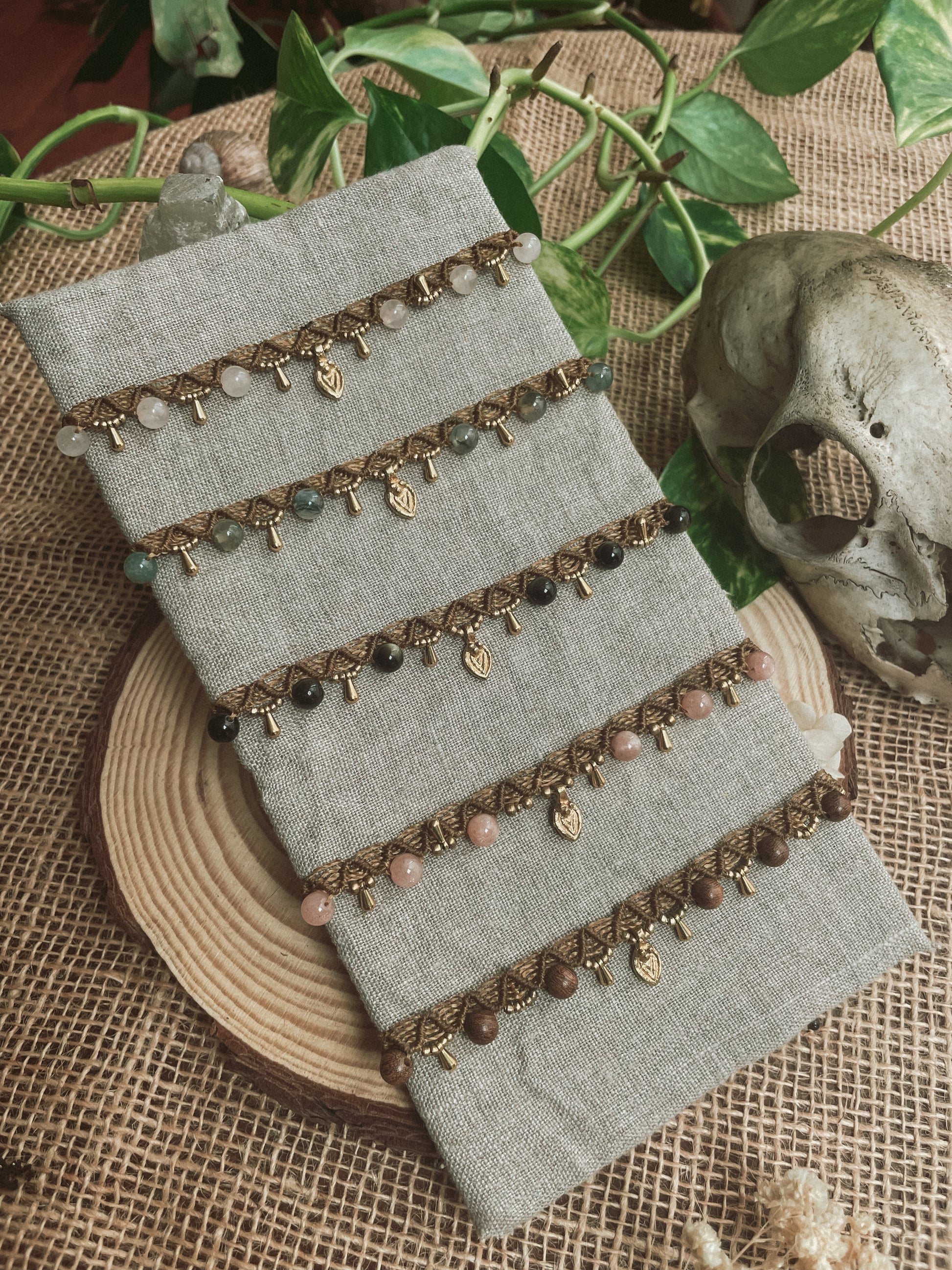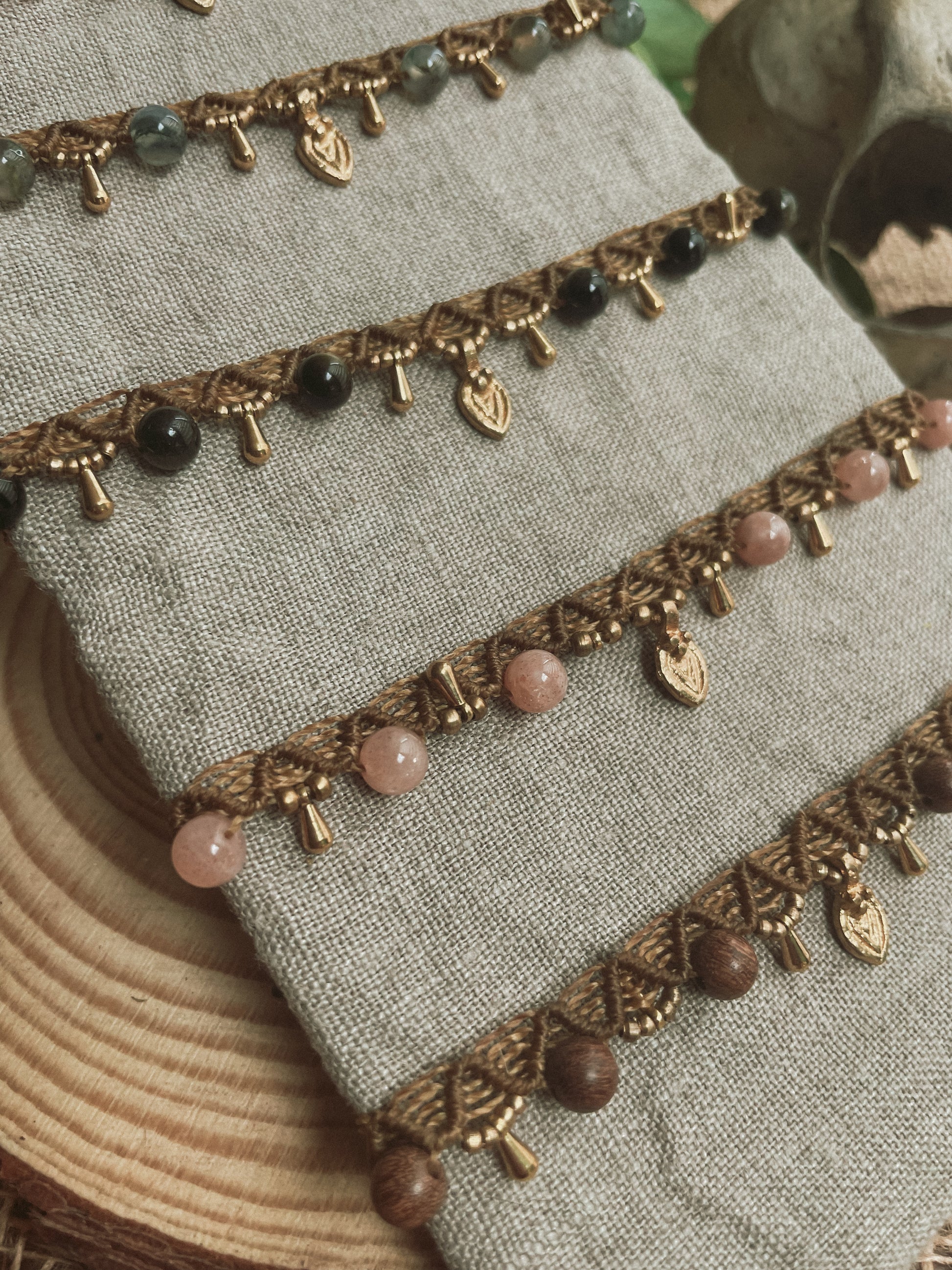 Diese Fußkettchen, mit Perlen aus Edelsteinen, wurden in liebevoller Handarbeit von mir hergestellt. Jedes Kettchen kann durch einen Knoten in der Länge variiert werden